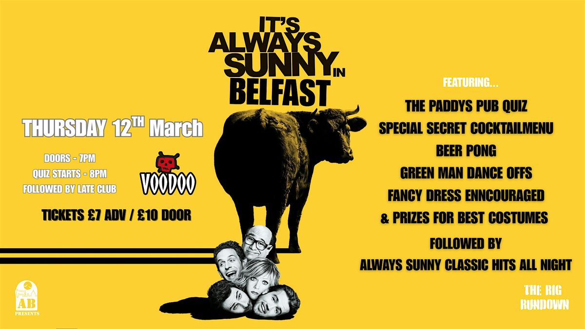 - The Paddy's Pub quiz! - Test your knowledge of all things It's Always Sunny, choose your teams wisely, begins at 8 sharp!
