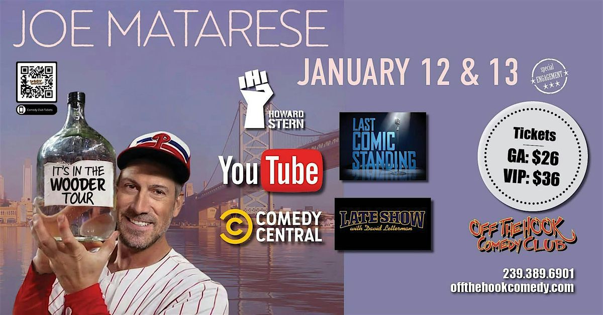 Comedian Joe Matarese grew up in the South Jersey/Philadelphia area and his comedy has a very strong connection to where he comes from. Joe's connection is so connected to that area these days that he titled his current comedy tour It's In The Wooder. People from the area know what that means, and if you don't pronounce the word water, wooder you'll still find Joe's comedy funny. The main reason for that is because he's so likable on stage, and he covers tons of subjects for all ages to enjoy. Joe's many standup comedy TV appearances include The Late Show with David Letterman, The Late Late Show with Craig Ferguson and Craig Kilborn, Comedy Central Presents Joe Matarese (his own 1/2 Hour Special), and he was a regular on Chelsea Lately. Joe was also featured on America’s Got Talent on NBC, where he received a standing ovation from all four celebrity judges. Joe has also been a guest on popular radio shows and podcasts including The Howard Stern Show, WTF with Marc Maron, The Adam Corolla Show, Preston & Steve on WMMR in Philadelphia, and 94.1 WIP in Philadelphia.