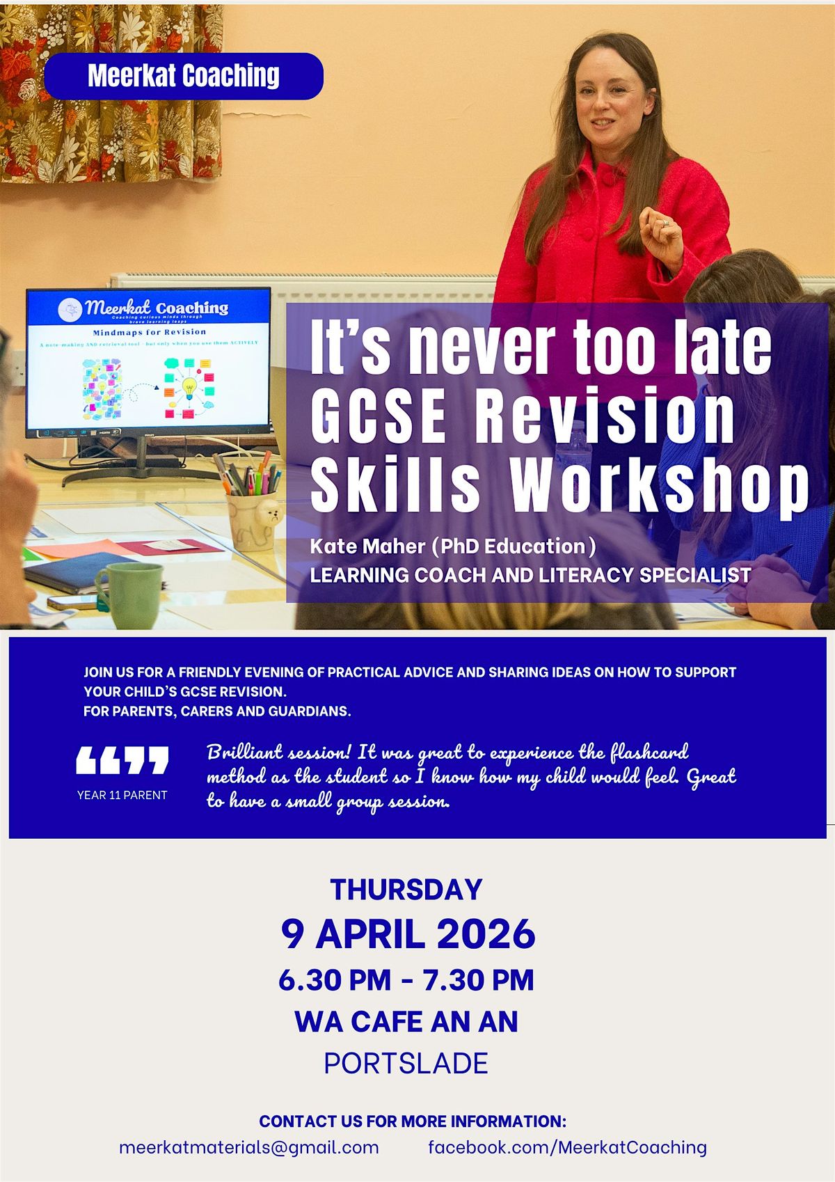 This friendly, small-group workshop is designed for parents, guardians, and carers of GCSE and mock exam students. In just one hour, you'll discover why so much revision doesn't stick, and what actually works instead — with practical activities you can use at home straight away.
