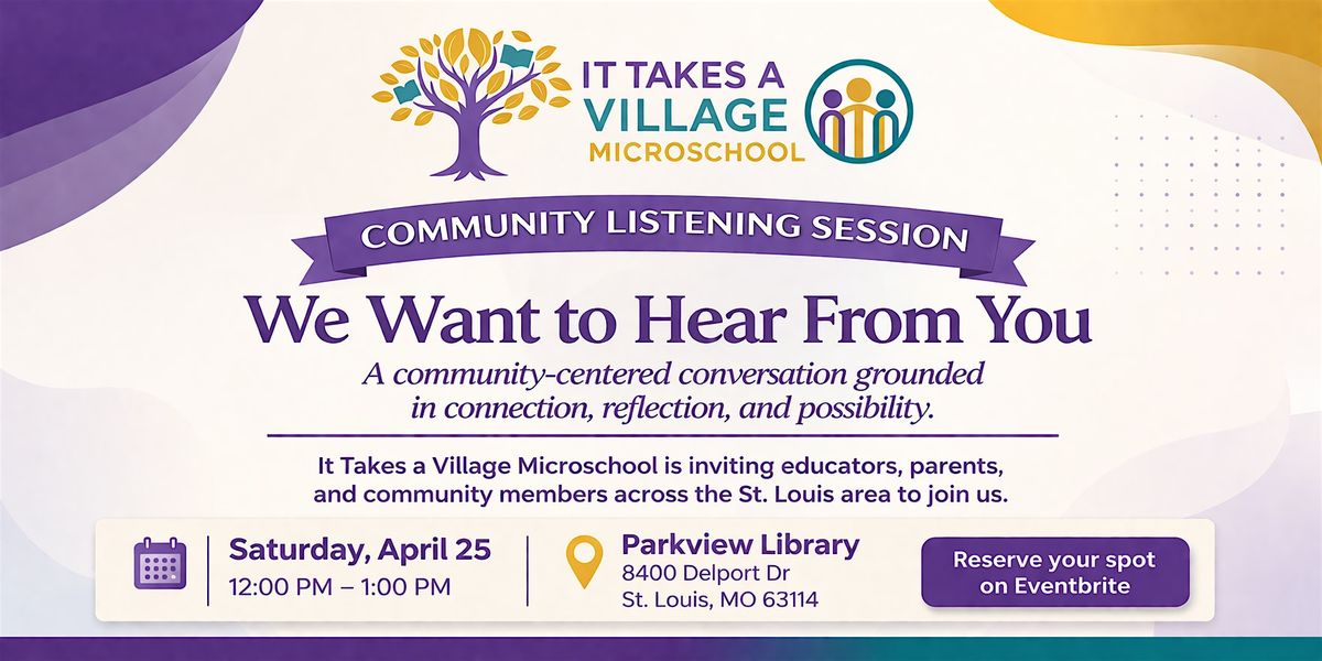 Join us for an in-person Community Listening Session hosted by It Takes a Village Microschool.