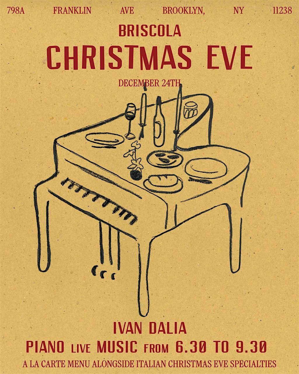 Join us for a Christmas Eve celebration at Briscola on December 24th. Please contact the venue directly for reservations.