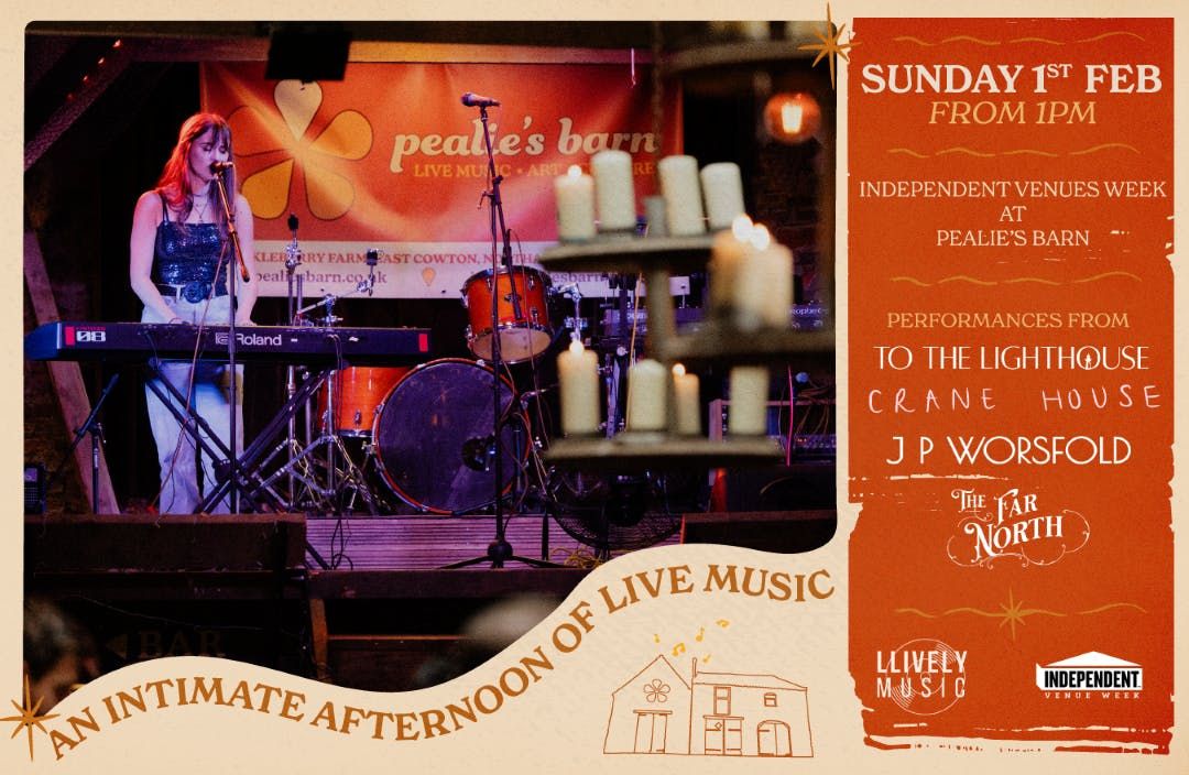 IVW: To The Lighthouse, J P Worsfold, CRANE HOUSE & The Far North live at Pealie's BarnWe've put together a very special Sunday afternoon showcase on the 1st of February celebrating Independent Venue Week at the absolutely wonderful Pealie's Barn near Northallerton.