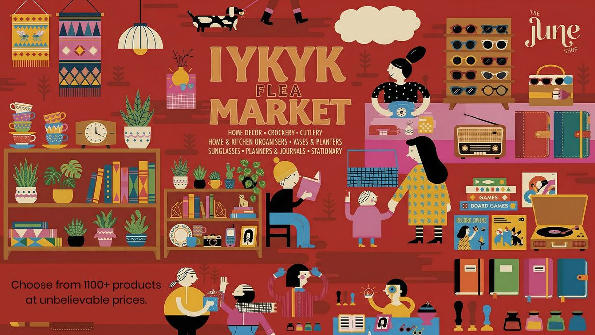 IYKYK Flea Market is The June Shop's biggest ever in-person shopping experience — a four-day celebration of great finds, unreal prices, and the kind of browsing that turns into hauling.Spread across a 4,000 sq ft floor, the space is stacked with over 2000 products across some of the most loved home and lifestyle categories around. Think carefully curated home decor, crockery and cutlery that's actually worth owning, vases and planters to bring your spaces to life, kitchen organisers that make the mundane feel satisfying, sunglasses for every mood, and an entire world of planners, journals and stationery for the chronically organised (and those who wish they were).Every product comes from The June Shop's curated collection — brought out of the screen and onto the floor, so you can touch, compare, and take home something you'll genuinely love.Highlights & Experiences:— 2000+ products across home decor, crockery, cutlery, vases, planners, stationery, sunglasses, home organisers, mats & rugs, gadgets and so much more— Prices at steep discounts (70-80% Off) — this is the flea market to actually stock up at— Free gifts to be won on the floor— All payment modes acceptedCome for one thing. Leave with ten.