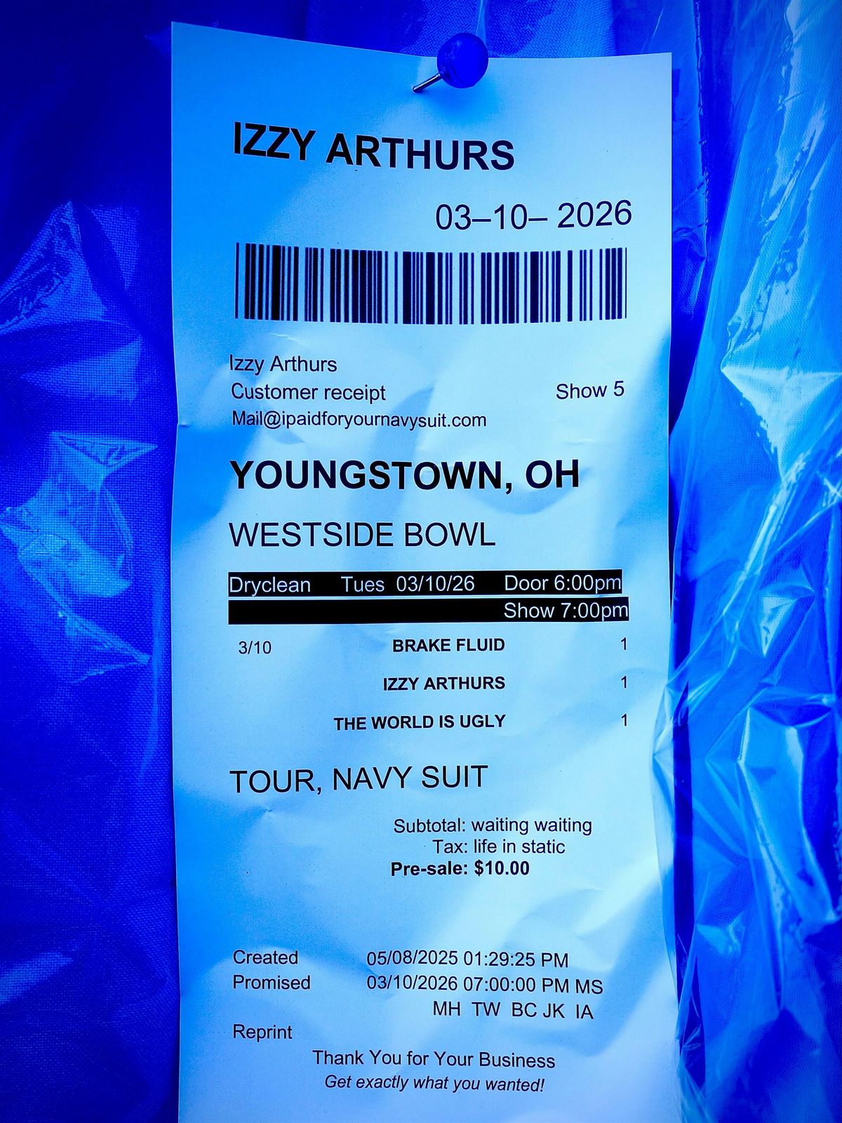Izzy Arthurs comes to Westside Bowl for the Navy Suit Tour with The World is Ugly and Brake Fluid!