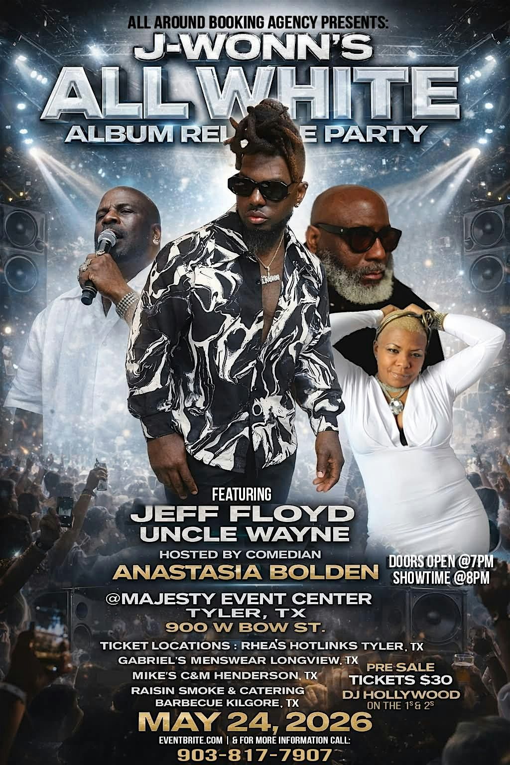 ALL AROUND BOOKING AGENCY PRESENTS J-WONN’S ALL WHITE ALBUM RELEASE PARTY WITH SPECIAL GUEST. PLEASE CALL NUMBER ON FLYER FOR RVSP TABLES