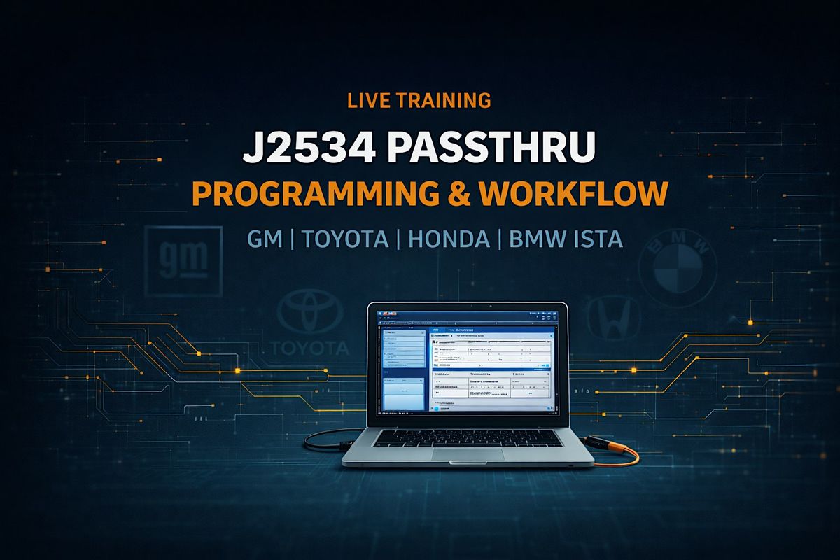 This live, in-person training session provides a structured, technician-focused walkthrough of J2534 standards, OEM login processes and real-world programming workflows.