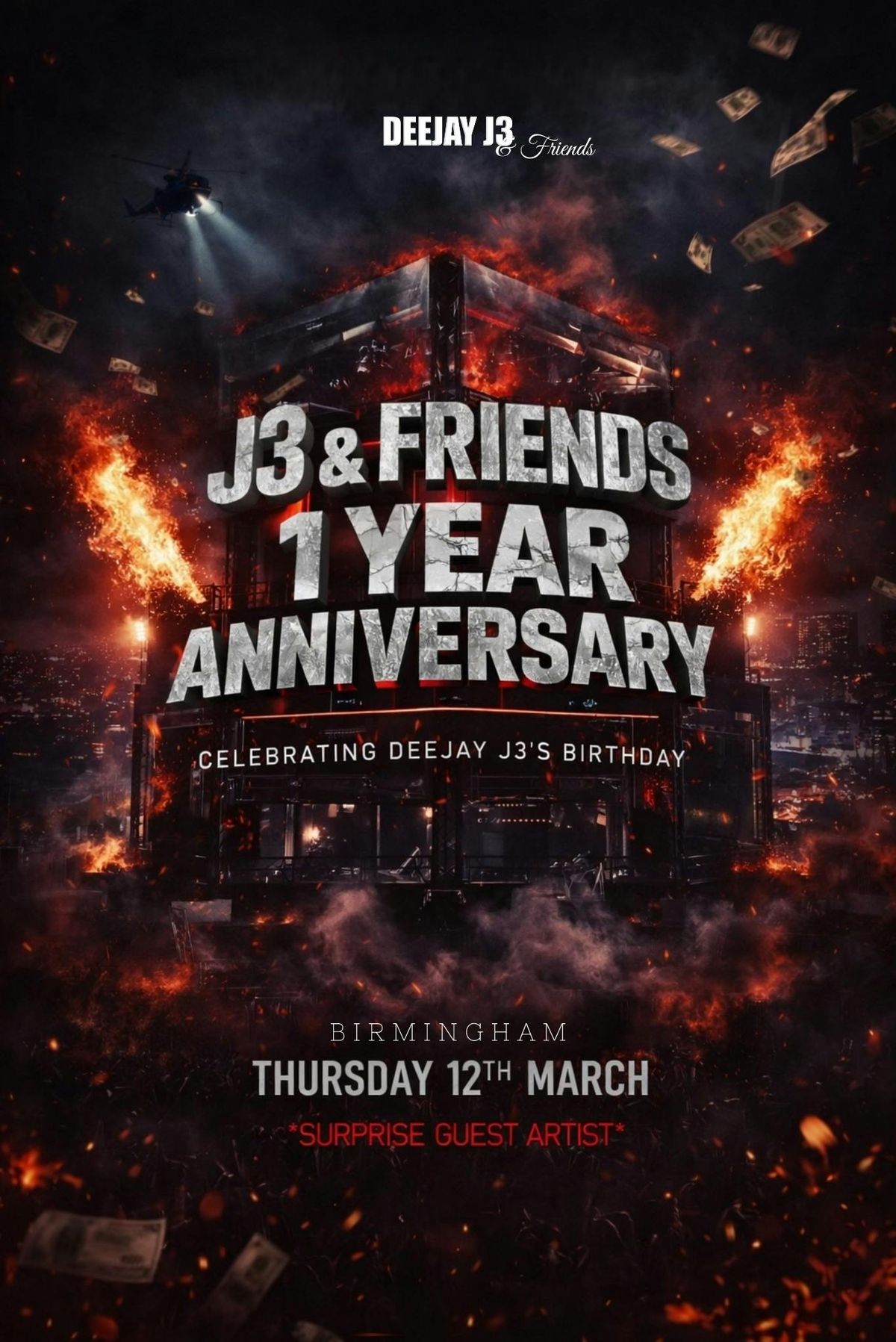 🔥🎉 J3 & FRIENDS – 1 YEAR ANNIVERSARY 🎉🔥CELEBRATING DEEJAY J3’S BIRTHDAYONE YEAR.ONE MOVEMENT.ONE MASSIVE CELEBRATION.