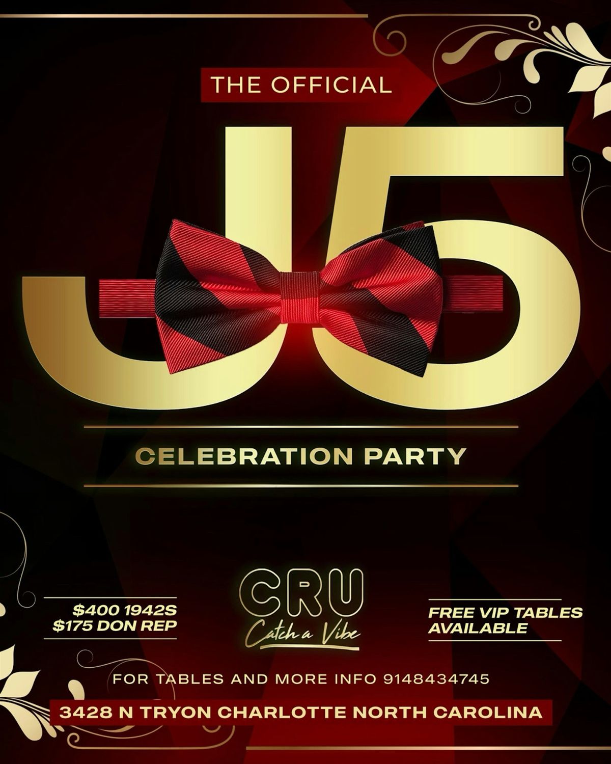 Itβs a celebration of style, success, and signature vibes. Join us at CRU for The Official J5 Celebration Party, an elegant night designed for a grown and polished crowd.