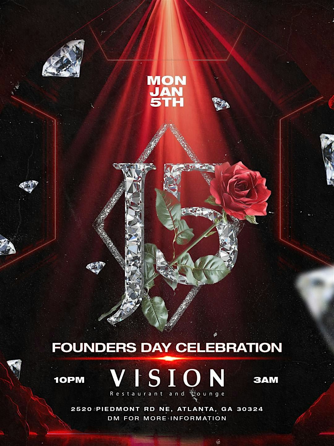 Welcome to the **J5: NUPE FOUNDERS DAY PARTY♦️** at **Vision Hookah Lounge**! Get ready to celebrate with us on January 5, 2026 at 9:00 PM. Join us for a night of music, dancing, and fun vibes. Don't miss out on this epic event! See you there!
