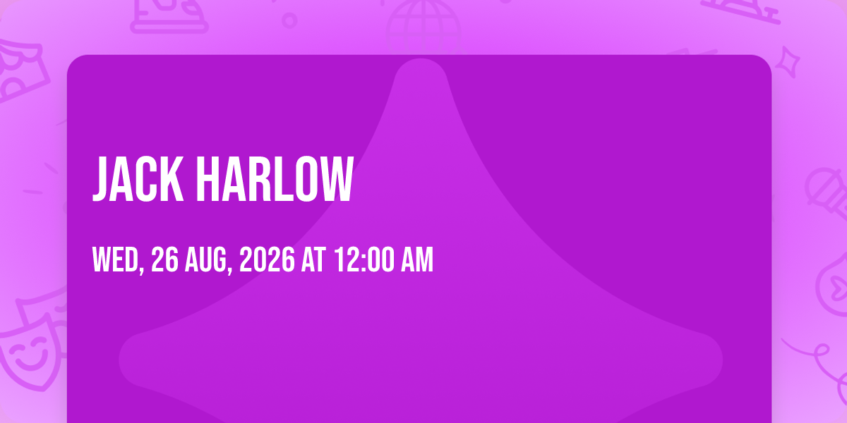 📍 Location: 38.8801, -77.0261🌟 Journey into wonder at Jack Harlow, where extraordinary experiences await around every corner! 🏛️ Set against the backdrop of The Anthem - DC in dynamic Washington, DC, this event promises to exceed all expectations. 📅 Join us on August 26th, 2026 at 12:00 AM for a celebration that combines innovation, entertainment, and community spirit in perfect harmony. ✨ There will be an atmosphere where memories are made and stories come alive, ensuring every guest experiences something truly remarkable. 🎊 This is more than just an event; it's a journey into the extraordinary!