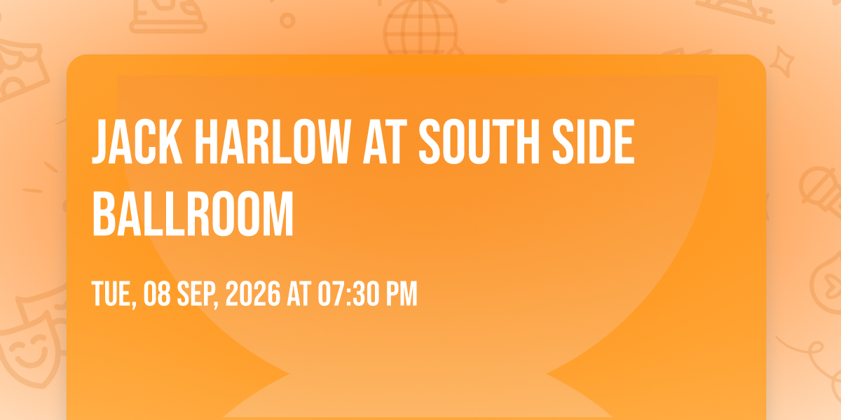 ✨ Discover the extraordinary at Jack Harlow at South Side Ballroom, where magic meets reality in ways you've never imagined! 🏛️ Set in South Side Ballroom nestled in bustling Dallas, TX, this event promises to be a landmark occasion. 📅 Taking place on September 8th, 2026 at 07:30 PM, it's going to create an atmosphere where every moment becomes a cherished memory. 🌟 Immerse yourself in an experience crafted with attention to every detail, designed to surprise and delight at every turn. They have worked tirelessly to ensure this event exceeds all expectations, bringing together elements of entertainment, innovation, and pure joy. 🎊 Don't miss your chance to be part of this remarkable journey!