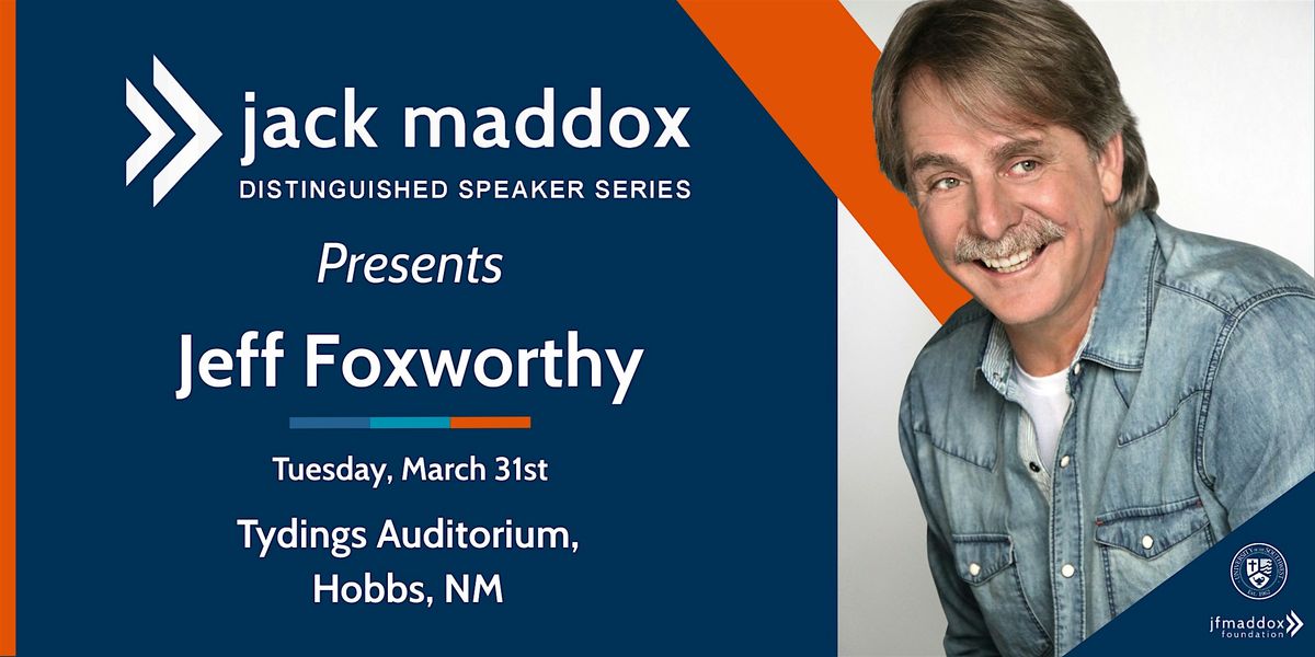 Jeff Foxworthy, the LEGENDARY COMIC AND BEST-SELLING AUTHOR, will be the next speaker for the Jack Maddox Distinguished Speaker Series, presented by the JF Maddox Foundation and the University of the Southwest.