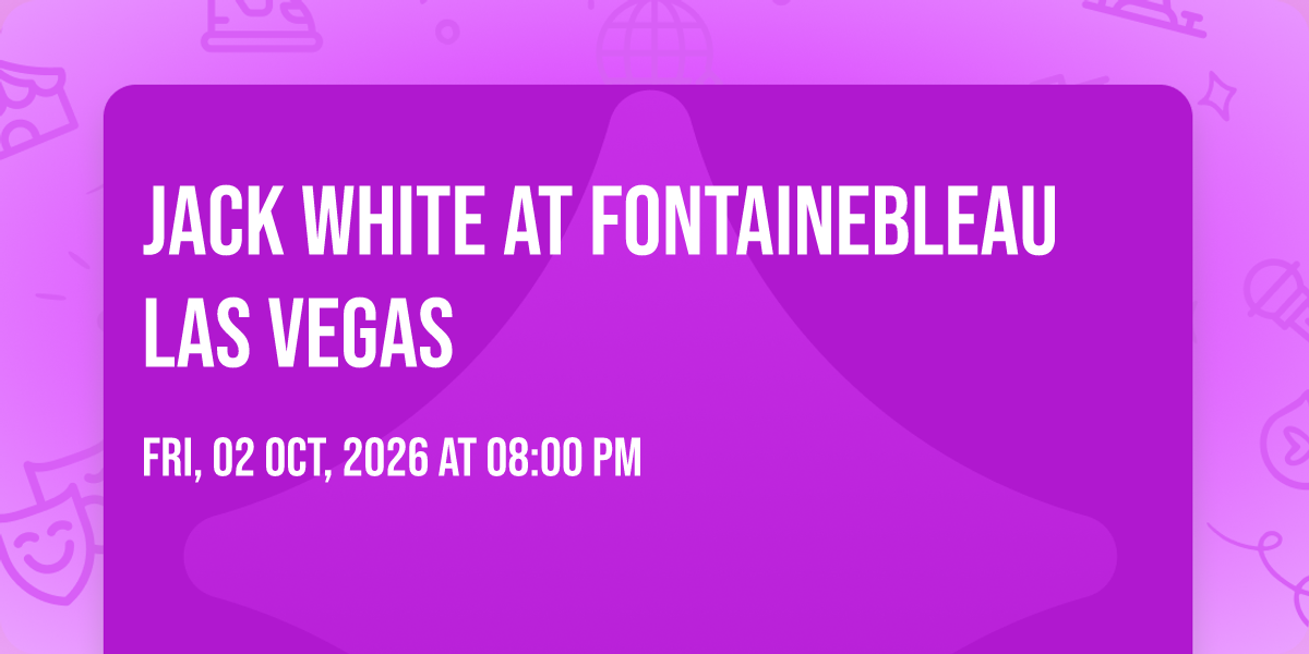 🌟 Journey into wonder at Jack White at Fontainebleau Las Vegas, where extraordinary experiences await around every corner! 🏛️ Set against the backdrop of Fontainebleau Las Vegas in dynamic Las Vegas, NV, this event promises to exceed all expectations. 📅 Join us on October 2nd, 2026 at 08:00 PM for a celebration that combines innovation, entertainment, and community spirit in perfect harmony. ✨ There will be an atmosphere where memories are made and stories come alive, ensuring every guest experiences something truly remarkable. 🎊 This is more than just an event; it's a journey into the extraordinary!
