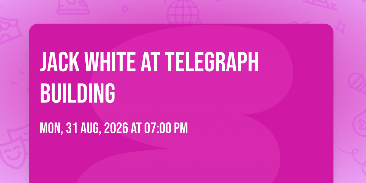 🌟 Journey into wonder at Jack White at Telegraph Building, where extraordinary experiences await around every corner! 🏛️ Set against the backdrop of Telegraph Building in dynamic Belfast, NI, this event promises to exceed all expectations. 📅 Join us on August 31st, 2026 at 07:00 PM for a celebration that combines innovation, entertainment, and community spirit in perfect harmony. ✨ There will be an atmosphere where memories are made and stories come alive, ensuring every guest experiences something truly remarkable. 🎊 This is more than just an event; it's a journey into the extraordinary!