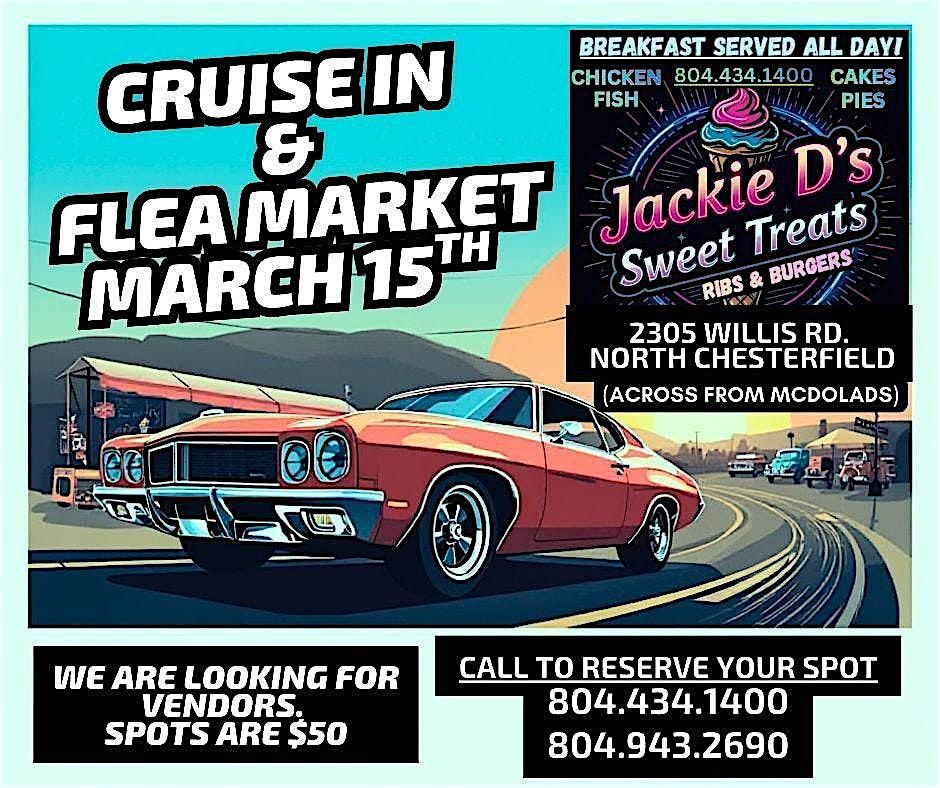 Join Us for Jackie D's Sweet Treats and Ribs Cruise In and Flea Market!