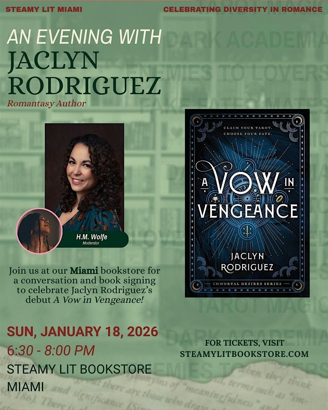 Hi readers, we are excited to announce our first book signing and convo for debut author Jaclyn Rodriguez at Steamy Lit Bookstore - Miami. Jaclyn will be in conversation with H.M. Wolfe.