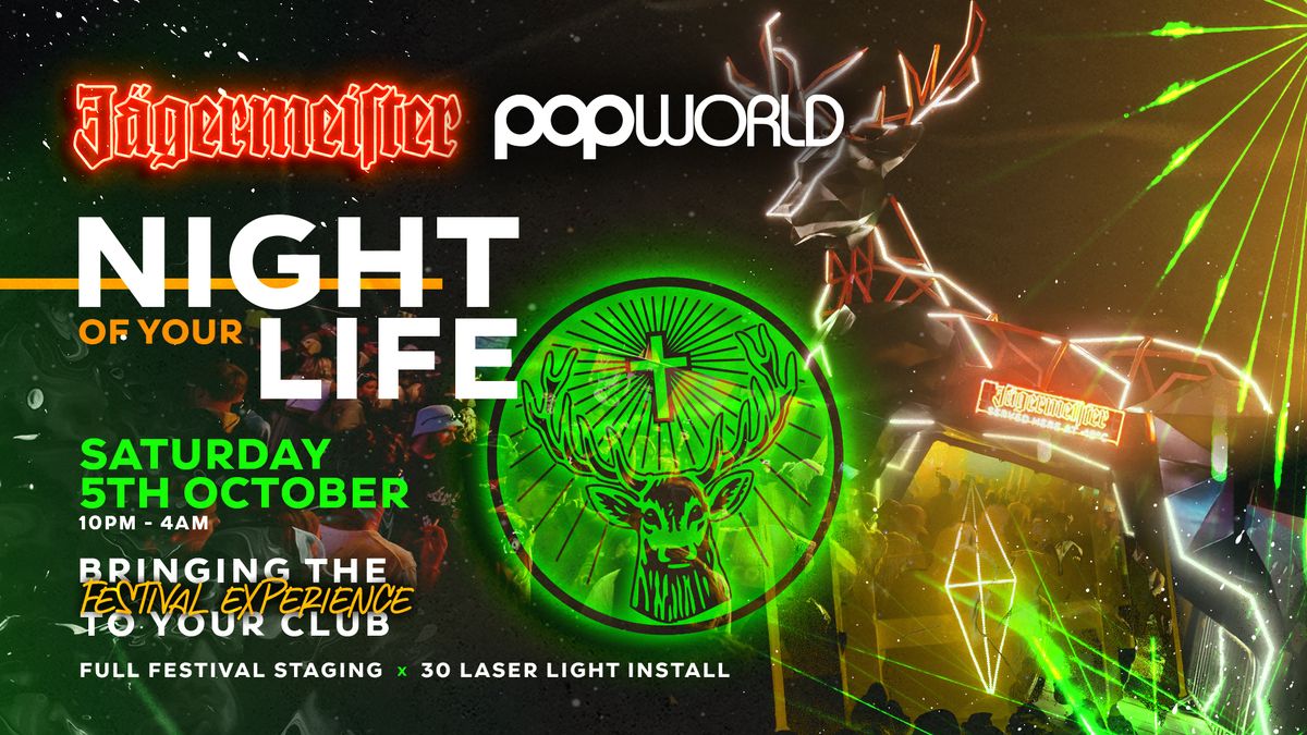 Come join us at Popworld Guildford for the Jagermeister Night Of Your Life! Get ready for a night filled with Jagermeister-themed fun, bringing the festival experience right to the club. Dance the night away surrounded by lasers, showered in confetti, and entertained by amazing performers.Last entry at 2am, so make sure you arrive early to catch all the action. Don't miss out on the party of a lifetime - grab your friends and get ready for a night you won't forget!