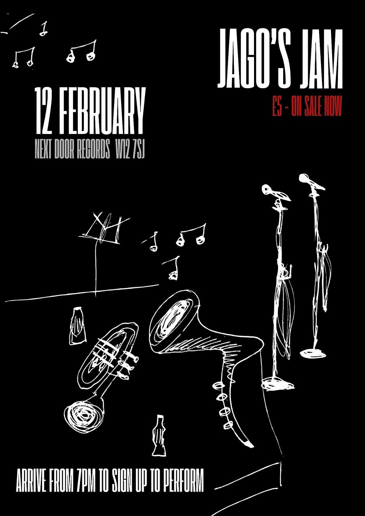 Jago's Jam returns to Next Door Records on the 12th February 2026 for just £5. Take to the stage and perform with the Soul/Jazz band.