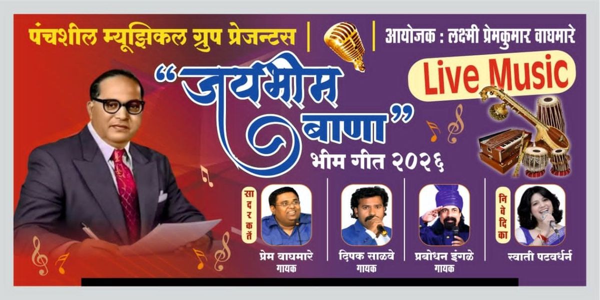 On the auspicious occasion of Bharat Ratna Dr. Babasaheb Ambedkar Jayanti on 14th April 2026, we present a powerful tribute featuring back-to-back Bhim Geet performances. This event celebrates the life and legacy of Dr. Babasaheb Ambedkar (Social Reformer & Jurist) through a soulful collection of songs performed with a live musical ensemble.
