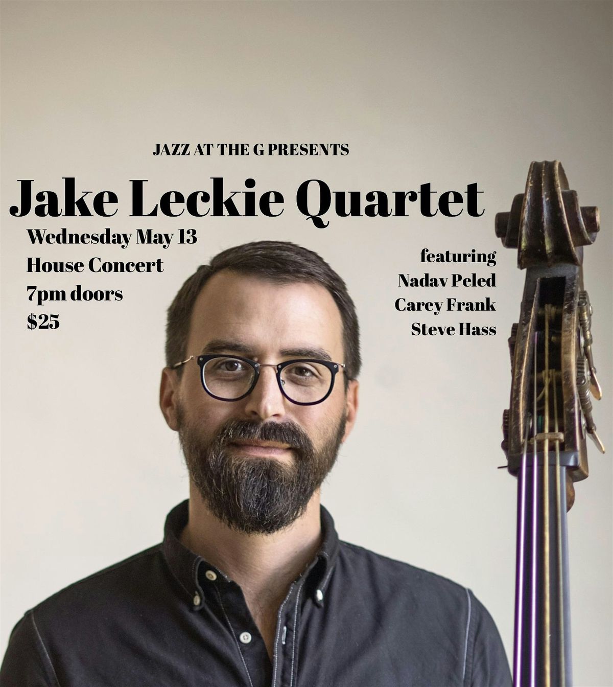 Jake Leckie creates acoustic organic soulful folk-jazz for the people! With firm roots in jazz, his bass playing is informed by classical, gospel, latin, folk, & hip- hop. His credits include touring with Sixto “Sugarman” Rodriguez, recording and touring with The Harlem Gospel Travelers,traveling to the Havana Jazz Festival to perform with Spanish saxophonist Gianni Gagliardi, recording two albums with Canadian pianist/composer Cat Toren for her Human Kind project, working as a session player with Grammy® Award-winning multi-platinum producer Bekon (on recordings with Megan Moroney, Jessie Murph, Victor Ray, CIL, and Saint Motel, and on the music for the AppleTV+ series Lady in the Lake starring Natalie Portman and Moses Ingram), playing SFJazz and Angel City Jazz Festival and recording Water Stem with saxophonist Hitomi Oba, and playing at The Apollo Theater and Newport Jazz Festival with piano prodigy Matthew Whitaker. He has performed with a diverse array of artists including pedal steel guitarist Susan Alcorn, avant-garde saxophonist Matana Roberts, String Orchestra of Brooklyn, Danny Jonokuchi Big Band, pianist Vardan Ovsepian, and Grammy® Award-winning Latin Big Band Pacific Mambo Orchestra. Additionally, he has performed on the stages of Jamboree Club (Barcelona), LACMA, Sam First, Libretto (Paso Robles), Mintons, Smalls and Blue Note (NYC), Hardly Strictly Bluegrass Festival (San Francisco), Pilgrimage Festival (Nashville), and The Montreal Jazz Festival. He produced several albums, including Chris McCarthy’s Ropeadope release Still Time To Quit, and mixed five albums by Thumbscrew (Mary Halvorson, Michael Formanek, Tomas Fujiwara). His work as a composer can be heard on PBS, BBC, HBO, CNN, and NBC. Leckie recorded his debut album The Abode in New York with trumpeter Kenny Warren, pianist Sebastien Ammann, drummer Nathan Ellman-Bell, and guest artist Caroline Davis, which was released on Outside In Music in 2019 to critical acclaim. After relocating to LA, produced his second album, The Guide an analog acoustic folk-jazz recording released on Ropeadope Records in April 2022,with guitarist Nadav Peled and drummer Beth Goodfellow. His third album of original music, Planter of Seeds, featuring The Guide Trio with pianist Cathlene Pineda, saxophonist Randal Fisher, and trombonist Darius Christian, was released in June of 2024.