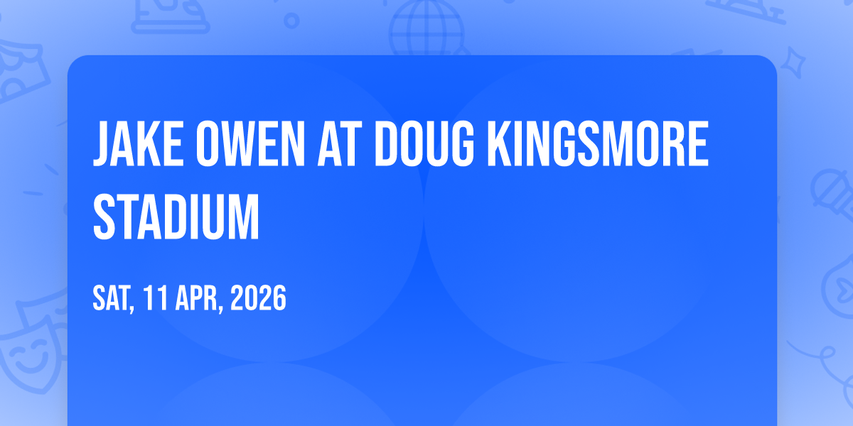 ✨ Experience the magic of Jake Owen at Doug Kingsmore Stadium, where moments become memories that last a lifetime! 🏛️ The iconic Doug Kingsmore Stadium in Clemson, SC sets the perfect stage for an unforgettable celebration on April 11th, 2026 at 05:30 PM. 🌟 It's been a curated experience that brings together the best of entertainment and innovation, creating an atmosphere of wonder and excitement. From the moment you arrive, you'll be immersed in a world where the ordinary transforms into the extraordinary. 🎊 Book early to secure your place in what promises to be an event that will be talked about for years to come!