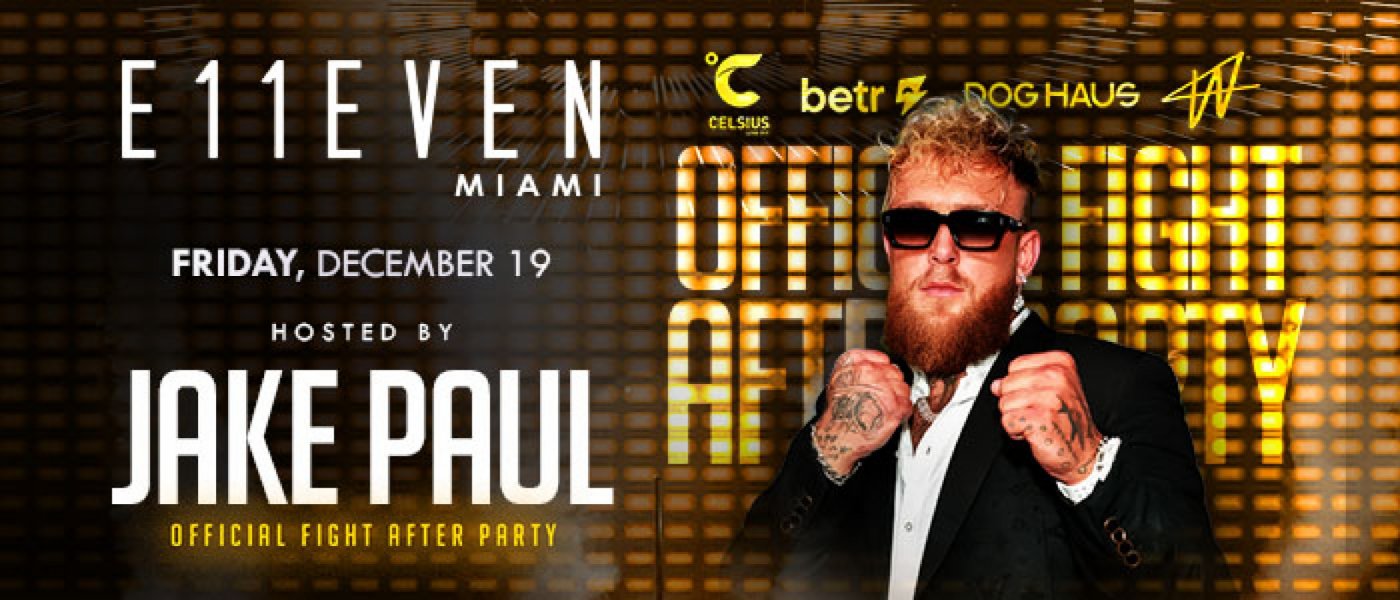 Fight Night official after party at E11EVEN hosted by Jake Paul Friday, December 19. Musical talent TBA.