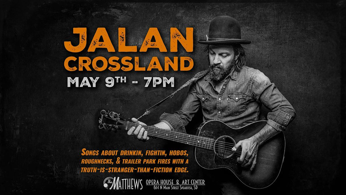 Jalan Crossland brings his acclaimed live show to The Matthews Opera House in Spearfish, SD on Friday, May 9, 2026. Known throughout the Rocky Mountain region for his extraordinary guitar work and engaging stage presence, Jalan delivers a performance that blends folk, bluegrass, and Americana into something entirely his own.