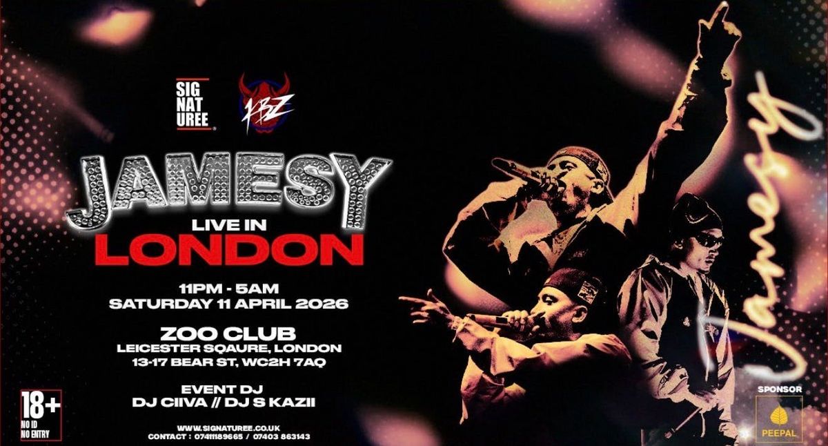 London, we’re outside. KBZ Events and Signature Events teaming up to bring Jamesy to the capital at Zoo Club, Leicester Square.