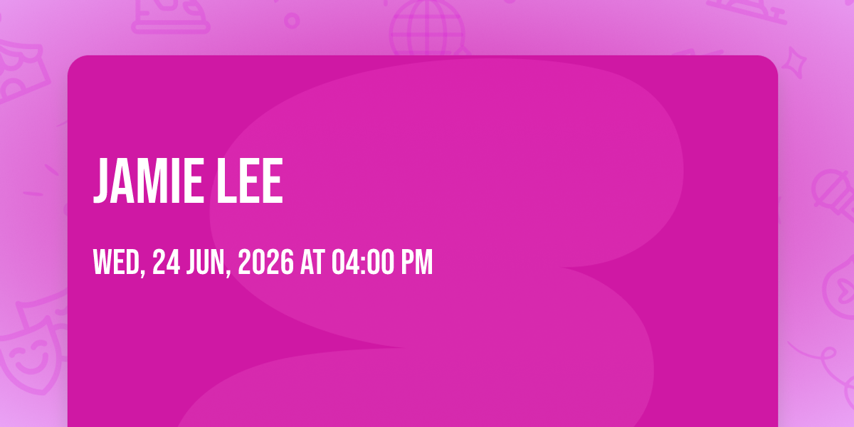 🌟 Step into a world of wonder at Jamie Lee, where extraordinary moments await! 🏛️ Located at Dynasty Typewriter at The Hayworth in dynamic Los Angeles, CA, this event will become the talk of the town. 📅 Join us on June 24th, 2026 at 04:00 PM for a celebration that defies the ordinary. ✨ This curated experience brings together the best of entertainment, culture, and community spirit. Every detail has been thoughtfully planned to ensure an unforgettable experience for all our guests. 🎯 Take advantage of this opportunity to be part of something special. 🎊 Early registration is recommended as space is limited!http://maps.seatics.com/GeneralAdmissionEvent_2021-07-08_1018_10122021_101115_SVGC_tn.png