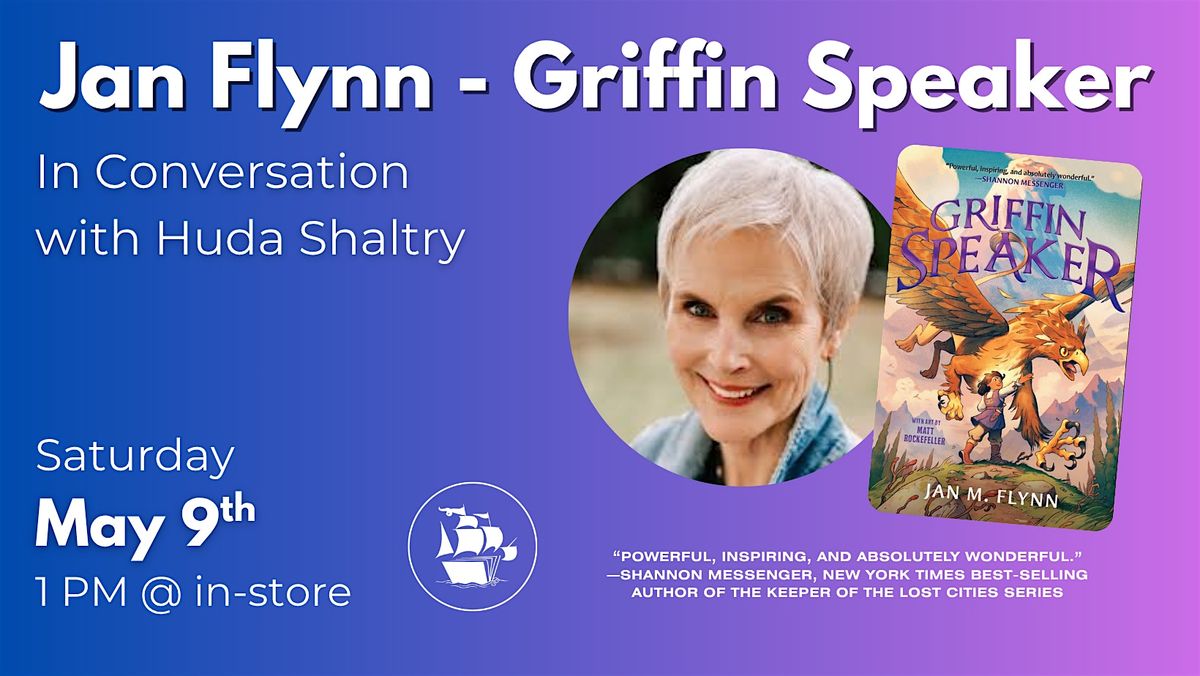 Don't miss local author Jan Flynn at our in-store event for Jan's new book Griffin Speaker. This is an awesome chance to meet Jan in person, hear about her latest work with librarian Huda Shaltry, and get your questions answered. Come find out about this new series, it's a fun, casual gathering you won't want to skip!
