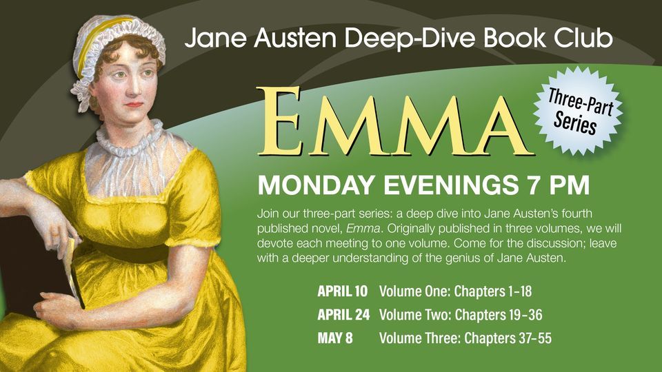 Join our three-part series: a deep dive into Jane Austen’s fourth published novel, Emma. Originally published in three volumes, we will devote each