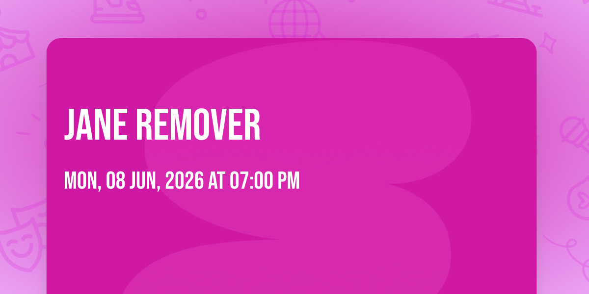 🌟 Journey into wonder at Jane Remover, where extraordinary experiences await around every corner! 🏛️ Set against the backdrop of Danforth Music Hall Theatre in dynamic Toronto, ON, this event promises to exceed all expectations. 📅 Join us on June 8th, 2026 at 07:00 PM for a celebration that combines innovation, entertainment, and community spirit in perfect harmony. ✨ There will be an atmosphere where memories are made and stories come alive, ensuring every guest experiences something truly remarkable. 🎊 This is more than just an event; it's a journey into the extraordinary!http://maps.seatics.com/DanforthMusicHallTheatre_EndstageGA_2024-02-21_2024-02-21_0002_02212024_001505_SVGC_tn.png