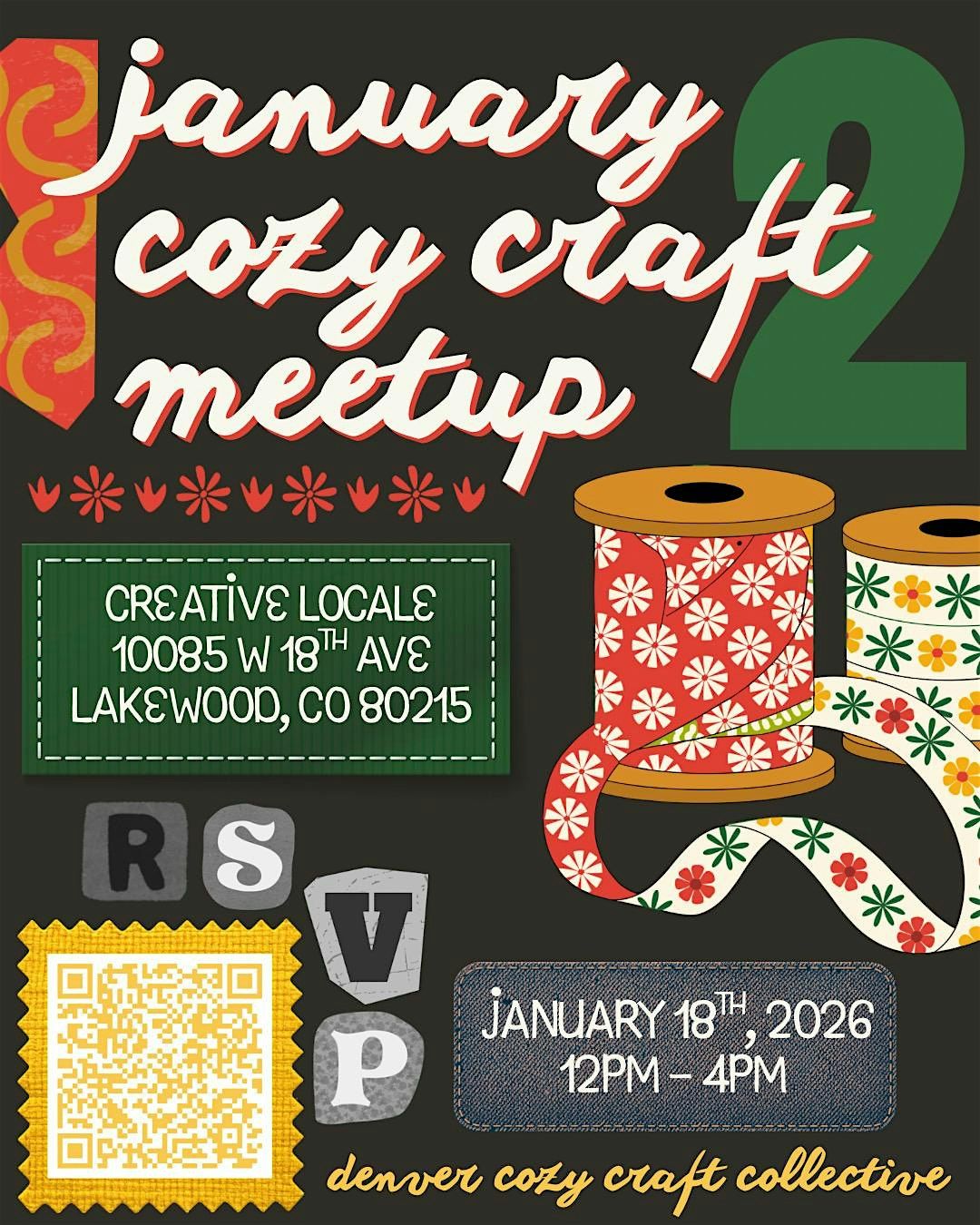 Join us for a fun and relaxed afternoon at the January Cozy Craft Meetup #2 in Lakewood! Bring your favorite crafty projects or try something new while enjoying great company and good vibes. Whether you're into knitting, painting, or DIY decor, this is your chance to unwind and create in a cozy setting. Don't miss out on the laughter, inspiration, and making new friends, see you there!