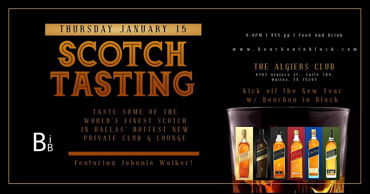 While we typically highlight bourbon, we are thrilled to invite you to an exclusive Scotch tasting and education event at the prestigious Algiers Club in the Design District of Dallas, TX. This is a unique opportunity to immerse yourself in the world of Scotch whisky, where you can expand your palate and deepen your appreciation for this fine spirit. Our spirits partner is Johnnie Walker!