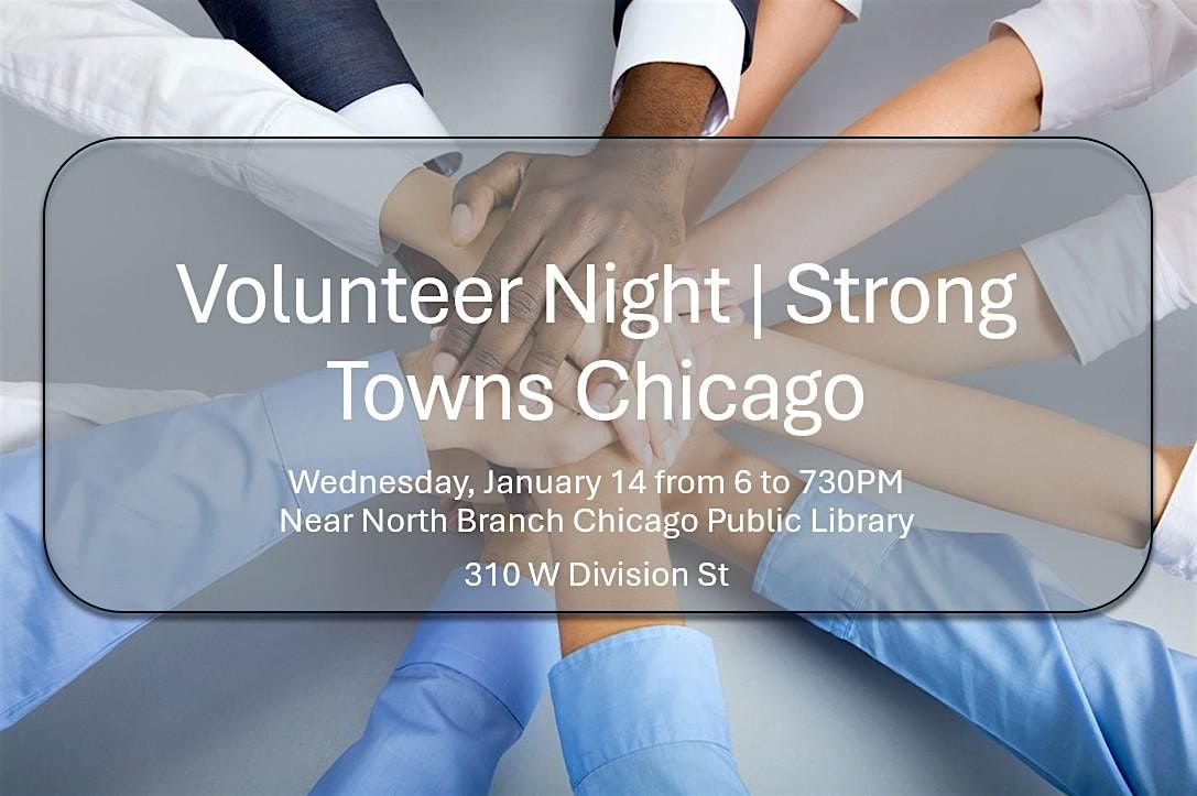 The Volunteer Night will take place at the Near North Branch Chicago Public Library branch at 310 W Divison Street. The meeting room is straight ahead from the entrance.