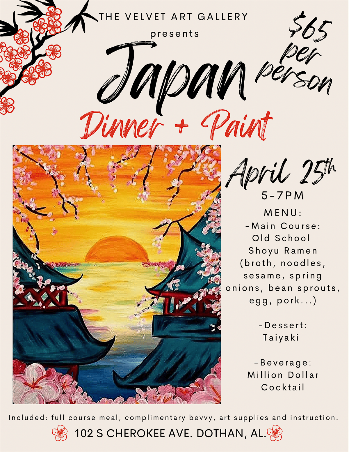 Japan time! We’re back with dinner and paint classes! Get hungry and ready to paint!About this Event