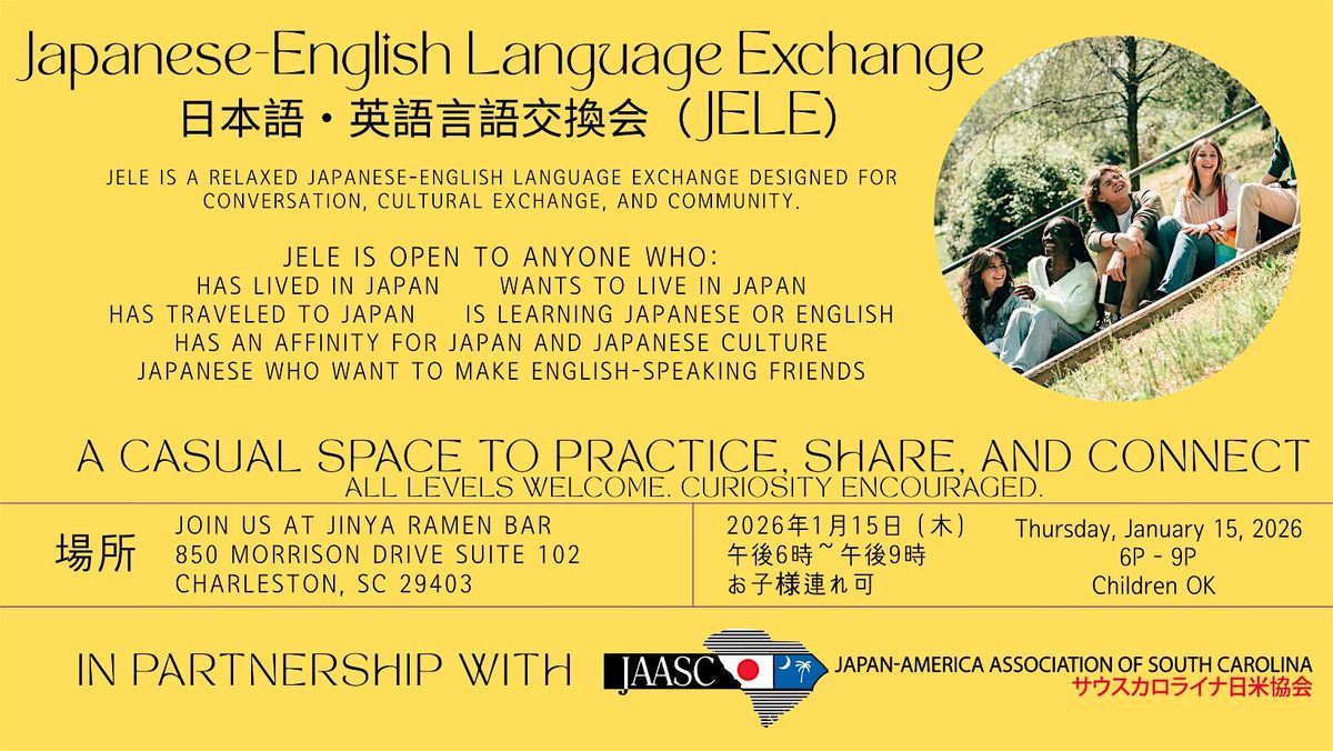 The Japanese–English Language Exchange (JELE) is a relaxed, welcoming gathering designed to bring people together through conversation, cultural exchange, and community.