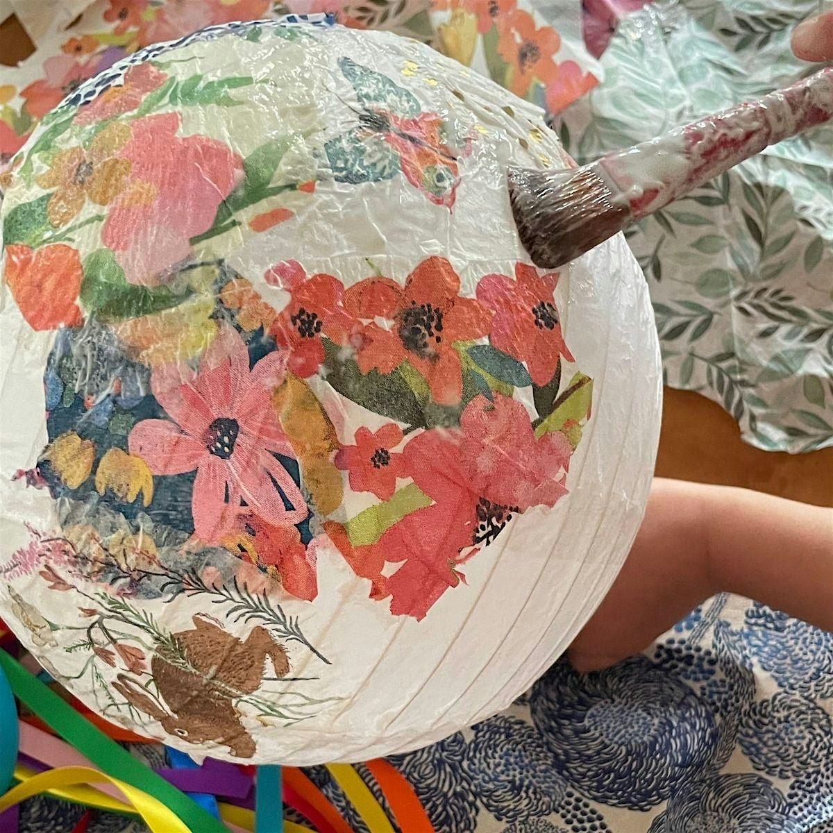 Participants of all ages will collaborate to design and decorate a classic round Japanese paper lantern using fun and accessible decoupage techniques.