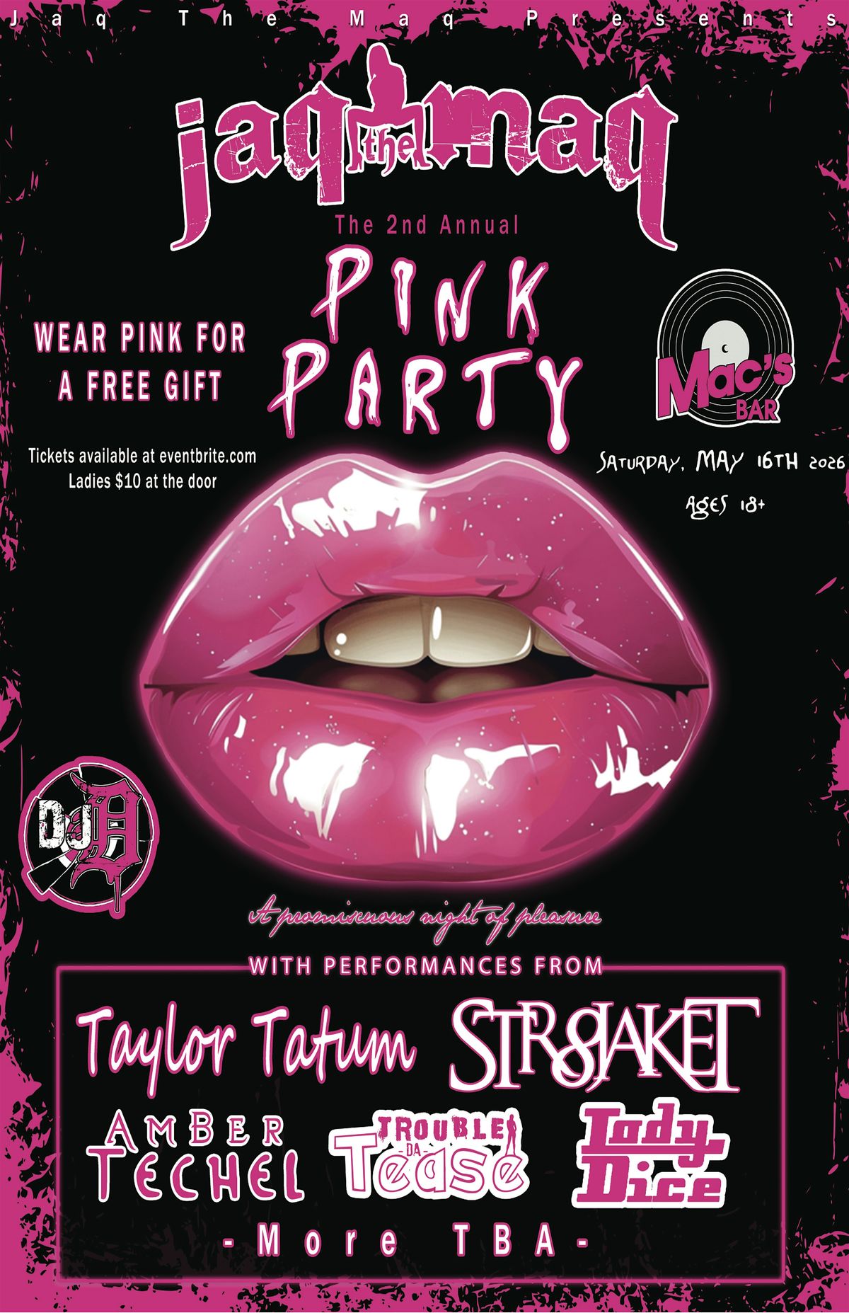 Jaq The Maq's 2nd Annual Pink Party is Going Down! This show is a sexy vibe. All PINK Everything!! Wear pink for a FREE gift! Tickets are $20 but Ladies Just pay $10 at the door!