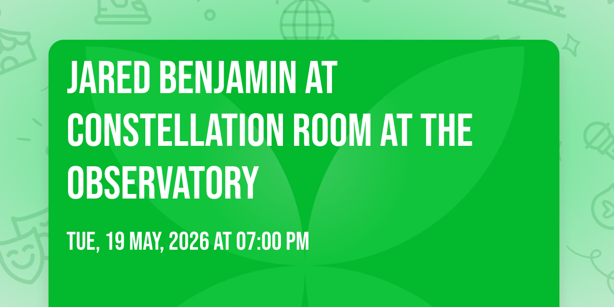 🎉 Welcome to Jared Benjamin at Constellation Room at The Observatory, where dreams come alive and possibilities are endless! 🏛️ Join us at Constellation Room at The Observatory in the heart of Santa Ana, CA for an event that defies expectations. 📅 On May 19th, 2026 at 07:00 PM, be part of something truly extraordinary as we bring together innovation, entertainment, and pure magic. ✨ Every aspect has been carefully designed to ensure an unforgettable experience for all our guests. Whether you're seeking adventure, inspiration, or simply a break from the ordinary, this event promises to deliver beyond your wildest dreams. 🎊 Prepare for a journey into the extraordinary!