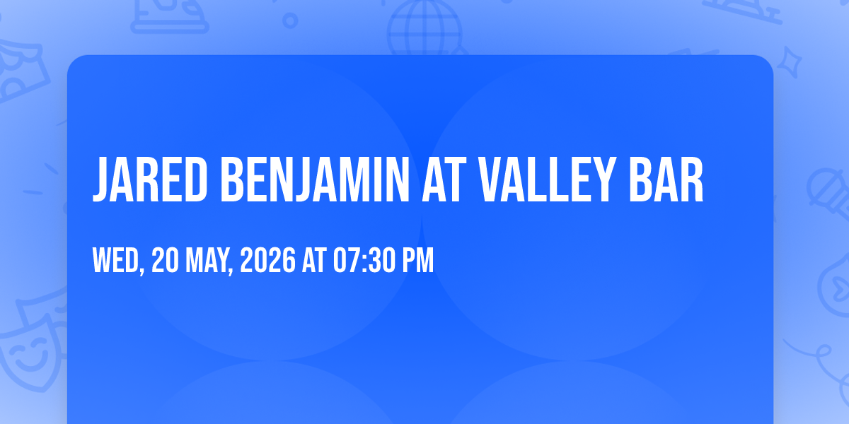 🌟 Be part of history at Jared Benjamin at Valley Bar, an extraordinary gathering that will captivate your imagination! 🏛️ The prestigious Valley Bar in Phoenix, AZ sets the stage for an unforgettable experience on May 20th, 2026 at 07:30 PM. ✨ They are bringing together the finest elements of entertainment and innovation to create moments that will take your breath away. From the moment you arrive, you'll be immersed in an atmosphere of wonder and excitement. 🎯 This carefully planned event ensures every guest experiences something truly special. 🎊 Early booking is recommended for this must-attend event of the season!