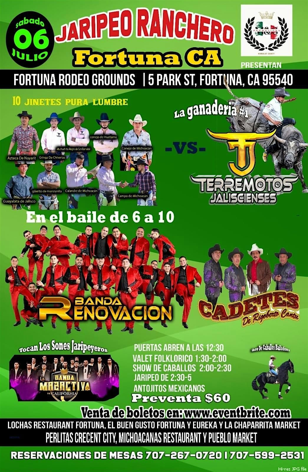 You are invited for our second year of the JARIPEO RANCHERO here in Humboldt County Saturday, July 6 for the first time at Fortuna Rodeo Grounds. Arriving the #1 livestock of the USA @losterremotosjalisienses with 10 strokes for 10 riders pure fire in the arena.