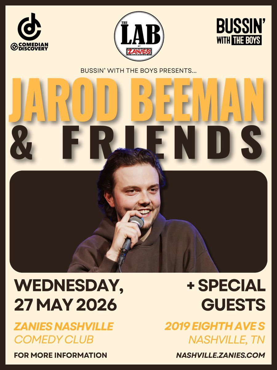 🎉 Welcome to Jarod Beeman, where dreams come alive and possibilities are endless! 🏛️ Join us at The Lab at Zanies in the heart of Nashville, TN for an event that defies expectations. 📅 On May 26th, 2026 at 06:00 PM, be part of something truly extraordinary as we bring together innovation, entertainment, and pure magic. ✨ Every aspect has been carefully designed to ensure an unforgettable experience for all our guests. Whether you're seeking adventure, inspiration, or simply a break from the ordinary, this event promises to deliver beyond your wildest dreams. 🎊 Prepare for a journey into the extraordinary!http://maps.seatics.com/GeneralAdmissionEvent_2021-07-08_1017_08162024_172544_SVGC_tn.png