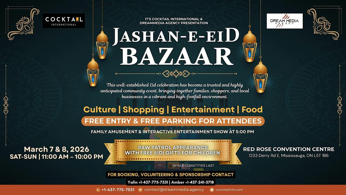 #JashanEGidBazaar #Eid2026 #CocktailInternational #DreamMediaAgency #RedRoseConventionCentre #MississaugaEvents #GTAEvents #FreeEntry #FamilyFun #EidShopping #EidBazaar #MuslimCommunity #WeekendPlans