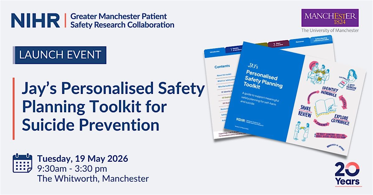 Jay’s Personalised Safety Planning Toolkit was developed as a result of ‘Jay’s Study’, a research project funded by the National Institute for Health and Care Research (NIHR) Research for Patient Benefit Programme. The work was led by a team of researchers based across the universities of Manchester, Teesside and Northumbria, also supported by the NIHR Greater Manchester Patient Safety Research Collaboration (GM PSRC) and the NIHR Applied Research Collaboration (ARC) North East and North Cumbria.