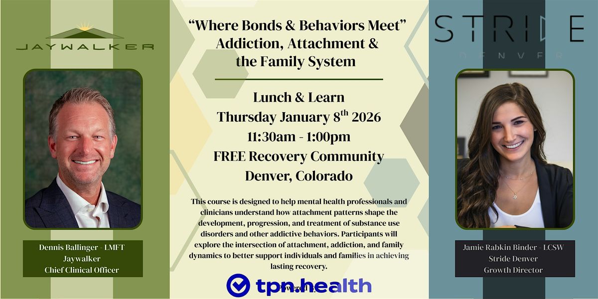 Join Jaywalker’s Chief Clinical Officer Dennis Ballinger, LMFT, and Stride Denver’s Growth Director Jamie Rabkin for his in person and live streamed CEU Event.