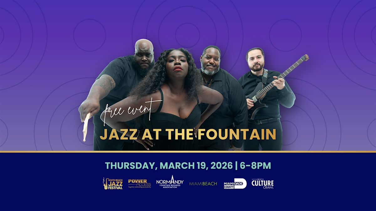 Jazz at the Fountain is a free live music event presented by Power Access, the Normandy Fountain Business Association, and the City of Miami Beach Culture Crawl. The evening features The Harden Project with special guest Frenchie Davis, along with an opening performance by Ari Reinoso as part of the Jazz for Tomorrow program.