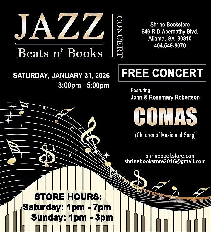 Join us in person for a laid-back, soulful evening that blends live jazz energy with the magic of books at the Historic Shrine of the Black Madonna Bookstore & Cultural Center in Atlanta’s iconic West End. This special night officially kicks off Black History Month, setting the tone with rhythm, reflection, and community connection.
