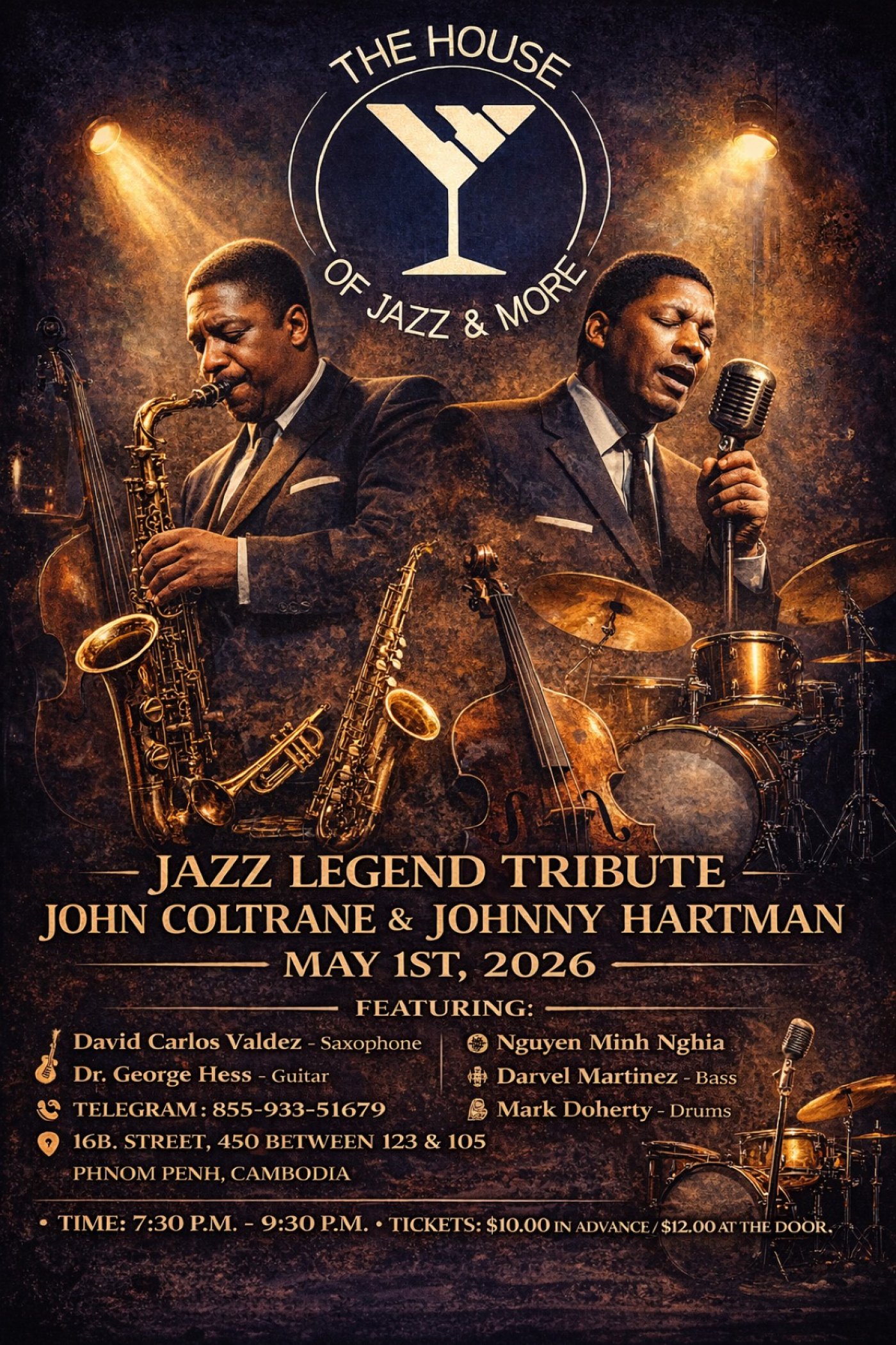 Experience the soulful melodies and timeless tunes at the Jazz Legend Tribute to John Coltrane, a mesmerizing musical event brought to you by The House Of Jazz & More. Join us on the 1st of May 2026 at 07:30 PM at the atmospheric venue - The House Of Jazz & More, nestled in the heart of Phnom Penh, Cambodia.