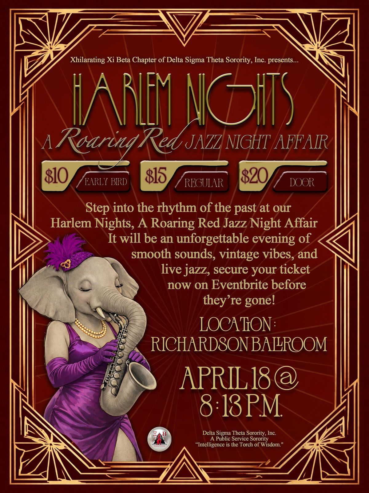 Fun interactive night of jazz, culture, and dancing. Refreshments will be provided. Harlem Nights theme attire is highly advised.